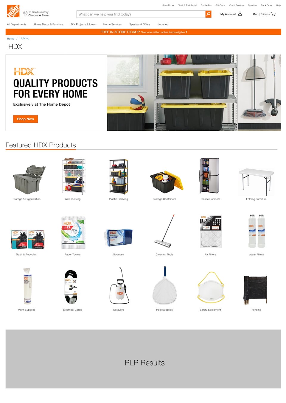 HDX Brand Hybrid PLP Page design for The Home Depot