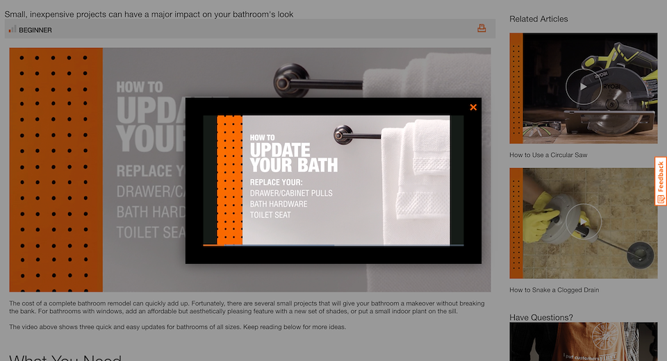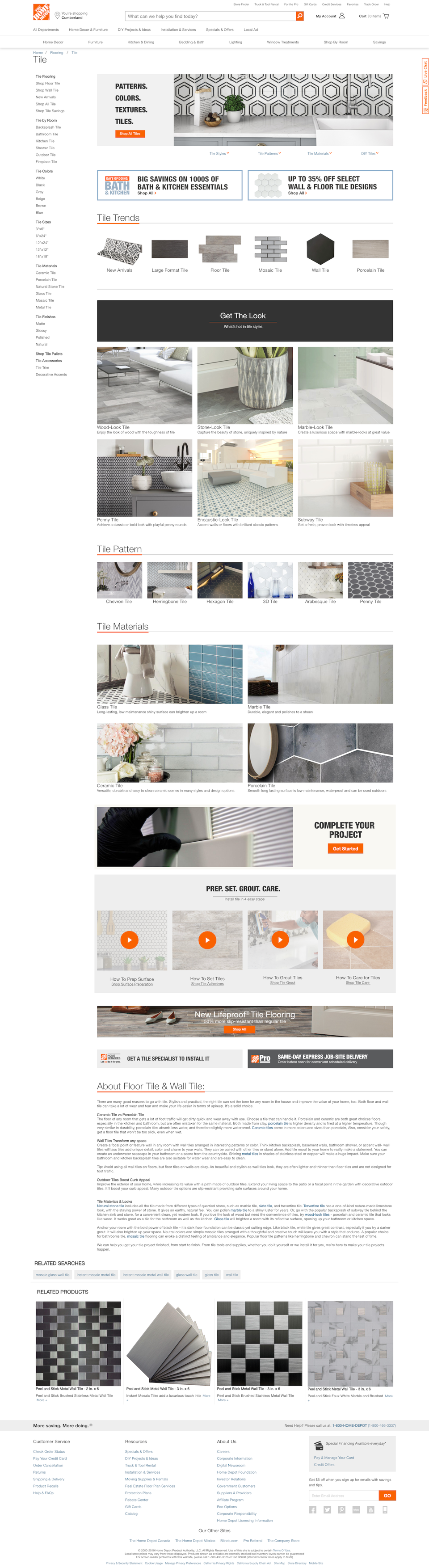 Completed the Design/Build/UX for Tile Page Redesign for The Home Depot 2019 within brand standards and with partners.